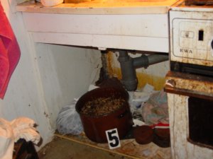 Policjanci postanowili sprawdzić również, czy Grzegorz S. i Andrzej Sz. nie posiadają narkotyków w swoich mieszkaniach. Kiedy wraz z zatrzymanym 41-latkiem jechali do jego domu, mężczyzna zachowywał się nerwowo. Pytał, czy takie czynności są rzeczywiście konieczne. Jak się okazało, mężczyzna wytwarzał w kuchni swojego mieszkania polską heroinę. Wezwany na miejsce technik kryminalistyki zabezpieczył susz makowy i przetworzoną już słomę makową, a także całą aparaturę służącą do produkcji narkotyku.