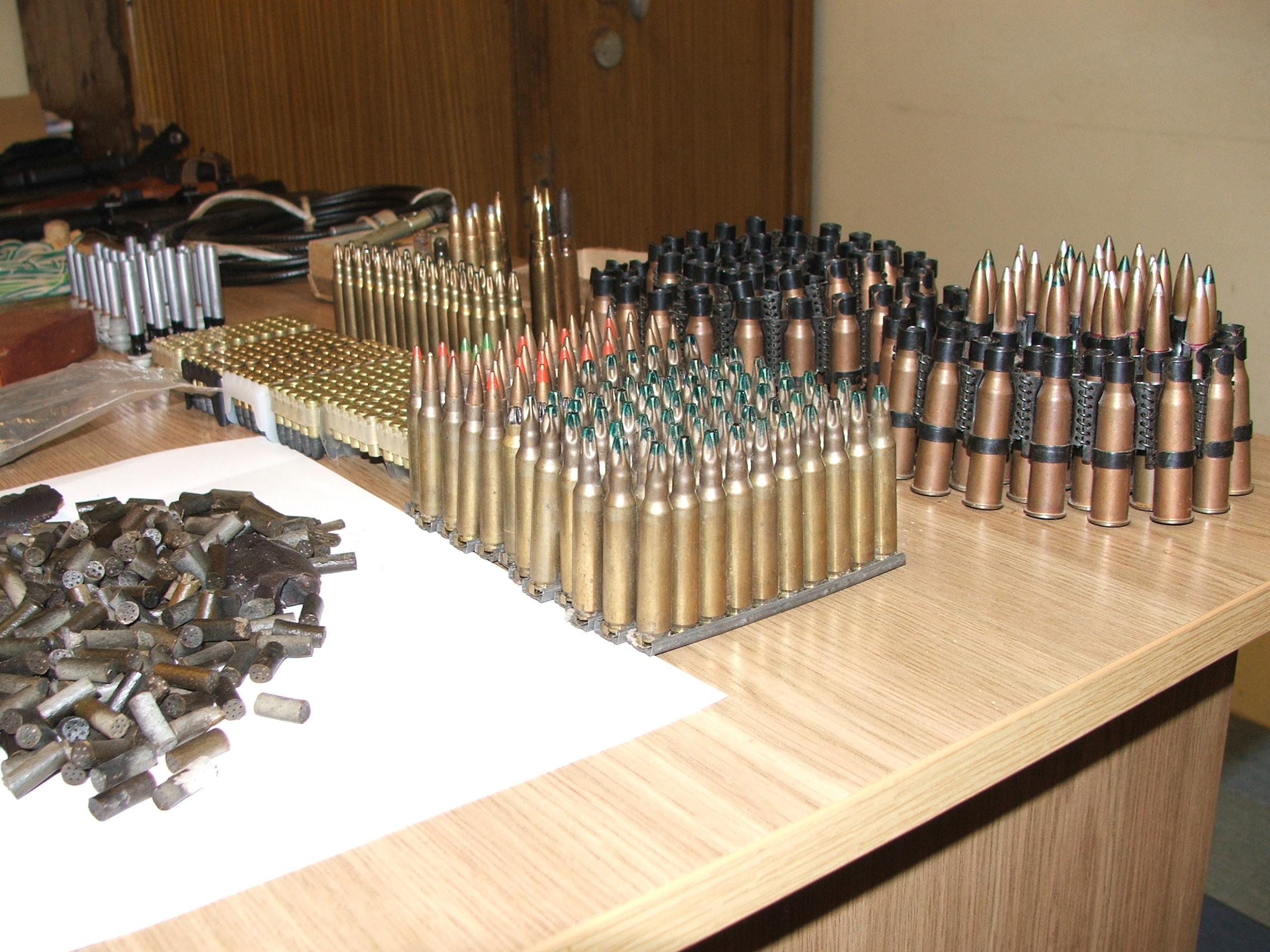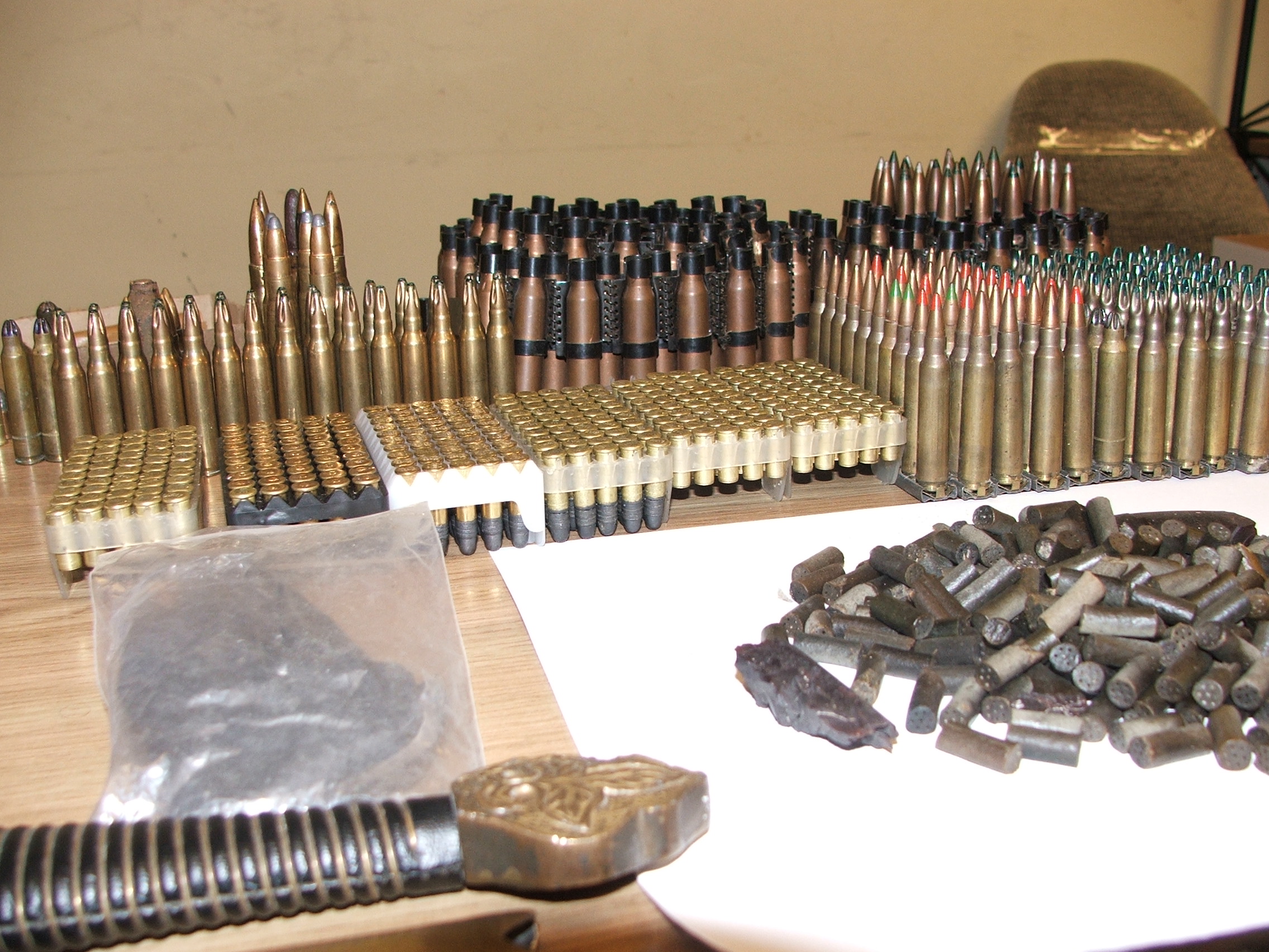 Policjanci zabezpieczyli m.in.: karabin z lunetą optyczną, wiatrówkę, celownik optyczny, bagnet do broni oraz prawie 400 sztuk amunicji ostrej i ślepej. W pudełkach pod regałami mężczyzna przechowywał zapalniki i lonty.