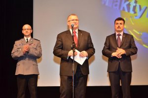 Spotkanie rozpoczął oczywiście insp. Grzegorz Jach z Komendy Głównej Policji – „ojciec” idei Przystanku PaT, reżyser przedstawienia i charyzmatyczny konferansjer. Konińska młodzież, która współpracowała z nim przez niespełna trzy dni już zdążyła docenić jego wkład i zaangażowanie w działania profilaktyczne, które są skierowane na ratowanie młodych ludzi przed nałogami. Żywiołowo reagowała na jego słowa.