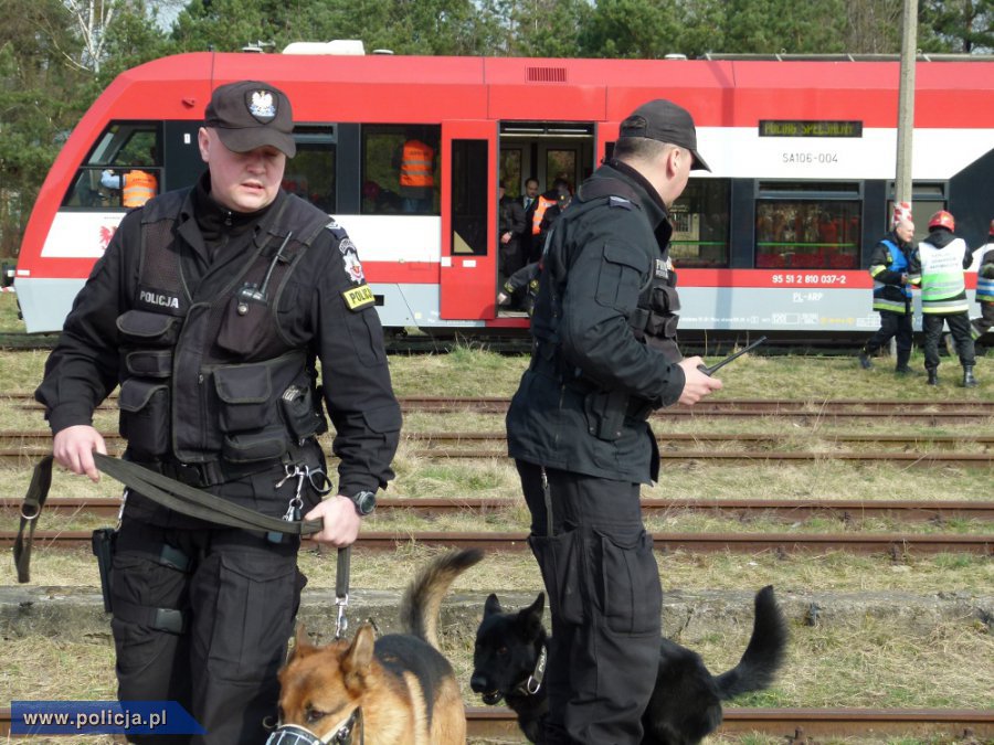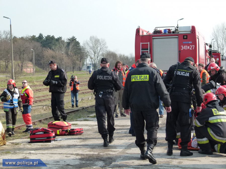 Tak zaczęły się wspólne ćwiczenia toruńskich służb: Policji, Straży Pożarnej, Pogotowia Ratunkowego, Straży Miejskiej i Straży Ochrony Kolei. Dalszy scenariusz zakładał odnalezienie pakunku z białym proszkiem oraz pożar w kabinie pociągu. W pierwszej kolejności działania policjantów polegały na zapewnieniu pierwszej pomocy poszkodowanym, a następnie zabezpieczeniu miejsca zdarzenia, a także komunikacji w sprawie działań innych służb. Funkcjonariusze zajęli się także ustalaniem okoliczności i świadków tego zdarzenia.