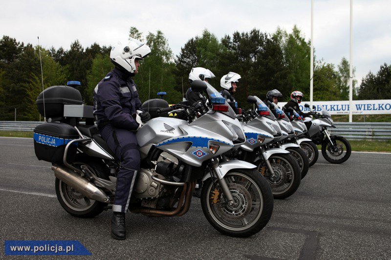 Wśród szkolących się było także 10 motocyklistów. Tutaj szkolenie było jeszcze bardziej wymagające. Motocykl „nie wybacza błędów”. W przypadku wywrotki bądź zderzenia motocyklisty poza kaskiem nic nie chroni. Stąd bardzo ważne jest opanowanie i zachowanie spokoju. Wielokrotnie mówił o tym motocyklowy mistrz Polski. Policyjni motocykliści ćwiczyli nagłe zatrzymanie, omijanie przeszkód czy też dynamiczne pokonywanie zakrętów.