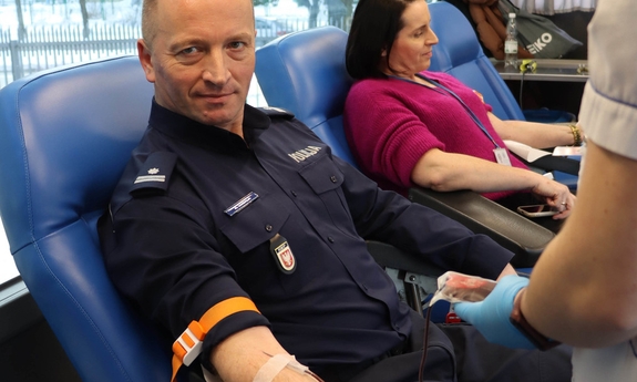 Ostatnia w tym roku zbiórka krwi wśród służb mundurowych odbyła się dzisiaj w Radomiu. Krew oddali policjanci i pracownicy Policji oraz funkcjonariusze Straży Granicznej. Akcję wsparły też siatkarki drużyny Moya Radomka Lotnisko Warszawa-Radom. Świąteczną zbiórką krwi mundurowi zakończyli tegoroczną, 11. edycję ogólnopolskiej akcji honorowego oddawania krwi pod hasłem „Nasza Krew - Nasza Ojczyzna”. Mundurowi oddali dzisiaj prawie 10 litrów krwi.