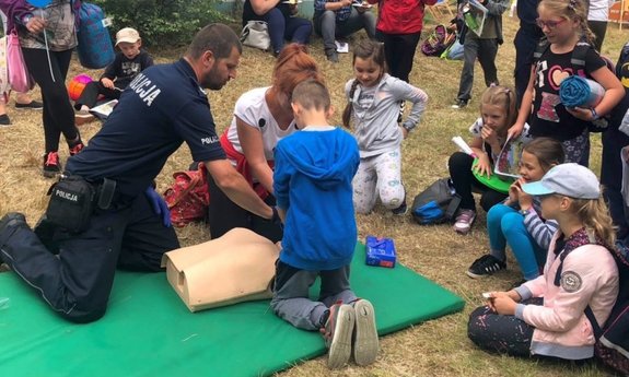 Dla wypoczywających dzieci i młodzieży w nadmorskich Rowach słuchacze i wykładowcy Szkoły Policji w Słupsku zaprezentowali cykl pokazów podczas festynu „Bezpieczne fale przygody”. Policjanci wspólnie z młodzieżą ćwiczyli udzielanie pierwszej pomocy osobom, które zasłabły lub tonęły.