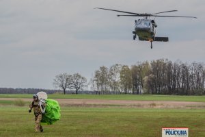 Na skrzydło, na linę, tandem i zrzut cargo – takie skoki spadochronowe i zrzuty wykonywali właśnie instruktorzy Centralnego Pododdziału Kontrterrorystycznego Policji "BOA" z policyjnego Black Hawka S-70i na lotnisku Warszawskiego Aeroklubu Chrcynno EPNC. Poprzedziły je ćwiczenia zgrywające kontrterrorystów i pilotów.