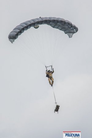 Ćwiczono również skoki w tandemie. W tym przypadku na niebie widać było dwóch skoczków na jednym spadochronie na dość dużej wysokości. Tego typu skoki pozwalają zabrać na operację bojową osoby nieprzeszkolone w skokach spadochronowych. Na koniec ćwiczono jeszcze "cargo", czyli zrzut samego ładunku na spadochronie, co jest nową zdolnością operacyjną załóg S-70i i kontrterrorystów.