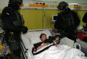 Kolejną niespodzianką była możliwość bezpośredniego spotkania się z kontrterrorystami z CPKP „BOA”, którzy odwiedzili na chwilę małych pacjentów. Najpierw funkcjonariusze zjeżdżając po linach z dachu budynku pukali w okna szpitalnych pomieszczeń i machali dzieciom, a później zaskoczyli wszystkich, kiedy okazało się, że są doskonałymi tancerzami i w rytm piosenki Majki Jeżowskiej pn. „Wszystkie dzieci nasze są” odtańczyli taniec radości.