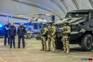 Kolejnym zakupem bez precedensu są lekkie transportery opancerzone. Odebraliśmy już pięć sztuk tych pojazdów, trzy kolejne trafią do jednostek kontrterrorystycznych w pierwszym kwartale tego roku. Kupiliśmy też łodzie motorowe i 1400 nowych samochodów osobowych dla polskich policjantów. Pozostałe 400 to pojazdy specjalistyczne oraz wspomniane śmigłowce. Prócz załogowych statków powietrznych kupiliśmy w ubiegłym roku także 30 dronów oraz sprzęt ochrony osobistej, w tym ponad 10 tysięcy sztuk kamizelek kuloodpornych, broń i hełmy. Było to możliwe dzięki ogromnemu zastrzykowi, jakim był dla polskiej Policji program modernizacji, za co dziękuję wszystkim Prezesom Rady Ministrów oraz ministrom spraw wewnętrznych i administracji, z którymi miałem zaszczyt współpracować i którzy przyczynili się do wejścia tego programu w życie.