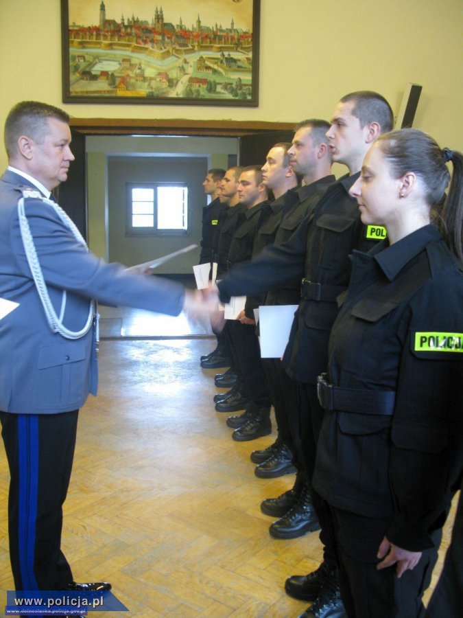 "Ja obywatel Rzeczpospolitej Polskiej świadom podejmowanych obowiązków policjanta..." - to początek roty ślubowania, którą składają przyjmowani do służby funkcjonariusze. Po kilkumiesięcznym szkoleniu zasilą szeregi Policji. Życzymy im wielu sukcesów!