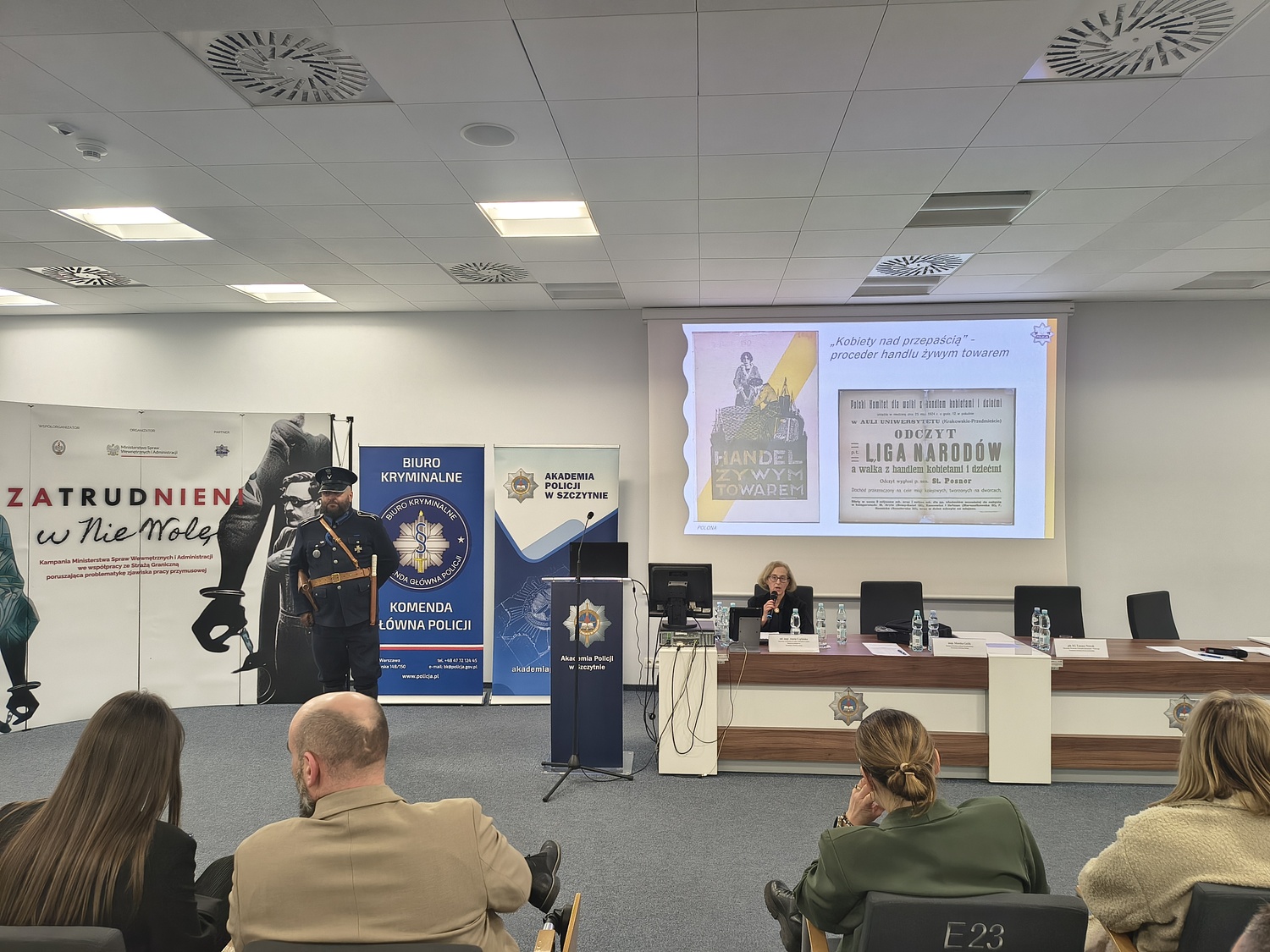 W warsztatach wzięli udział również przedstawiciele Akademii Policji w Szczytnie, którzy zaprezentowali mechanizmy sprawcze przestępstwa handlu ludźmi oraz omówili problematykę cyberprzestrzeni jako narzędzia handlu ludźmi, w której aktualnie dochodzi do werbunku ofiar oraz rozliczeń sprawców. Wydarzeniem, które znacząco zwiększyło wartość edukacyjną przedsięwzięcia było wystąpienie przedstawicieli Wydziału Edukacji Historycznej Gabinetu Komendanta Głównego Policji połączone z projekcją filmu „Kobiety nad przepaścią” z 1938 r., który został zrealizowany pod protektoratem i przy udziale Polskiego Komitetu Walki z Handlem Kobietami i Dziećmi. Film miał ostrzegać potencjalne ofiary przed grożącym im niebezpieczeństwem oraz ukazać w przystępnej, popularnej formie metod działania handlarzy kobietami.