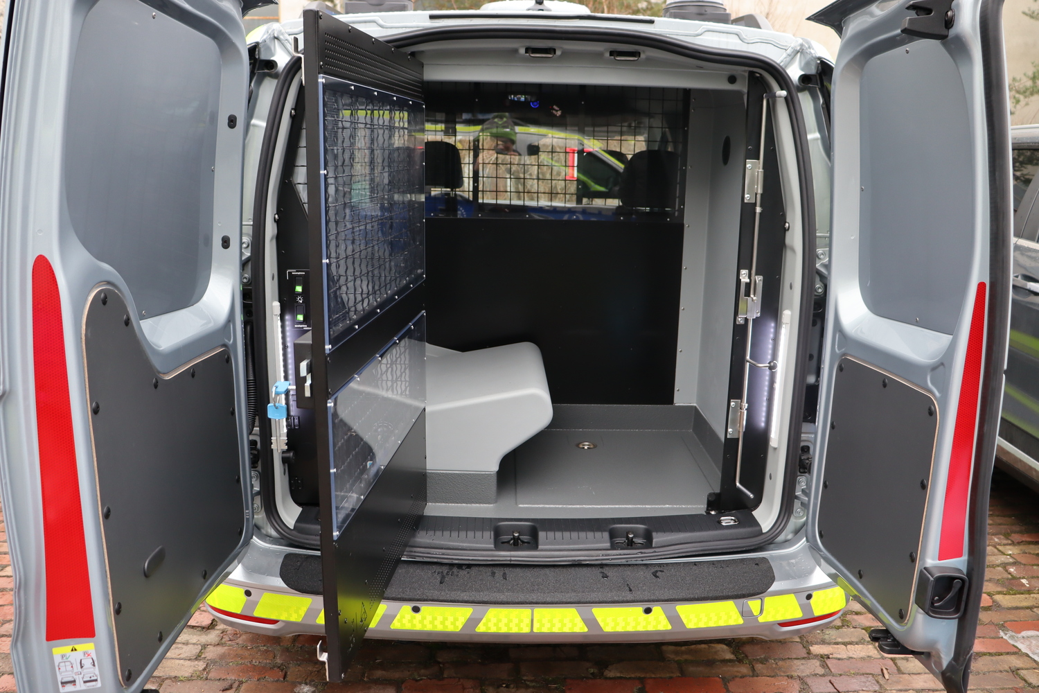 Tylna część pojazdu stanowi wyizolowany, specjalnie przystosowany przedział, wyposażony w niezależny, dedykowany dla osoby zatrzymanej system wentylacji, klimatyzacji oraz ogrzewania. Rozwiązanie to zwiększa zarówno poziom bezpieczeństwo, jak i komfort przewożonych osób.