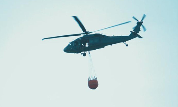 Policyjny śmigłowiec Black Hawk w akcji gaszenia pożaru lasu