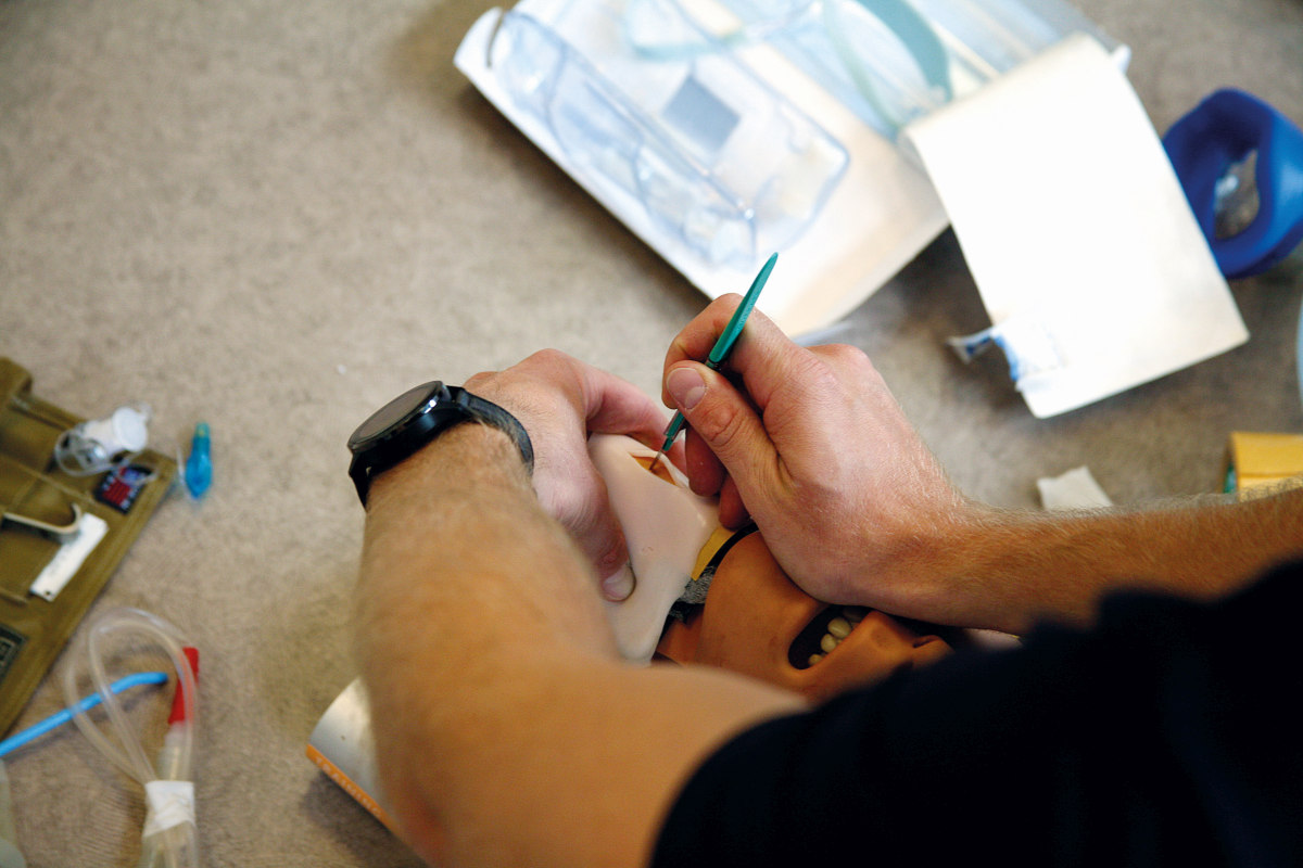 Pierwszego dnia mundurowi uczestniczyli w warsztatach szkoleniowych z zakresu udzielania pierwszej pomocy psu w wypadkach nagłych – K9 First AID, symulacji i realizacji symulacji w ramach pierwszej pomocy, wkłuć doszpikowych, badania ultrasonograficznego, znaczenia jakości RKO w przeżywalności NZK, RKO z użyciem AED, podstawowych metod szycia ran w warunkach przygodnych, masywnych krwotoków, udrażniania dróg oddechowych i postępowania w sytuacji użycia bojowych środków trujących.