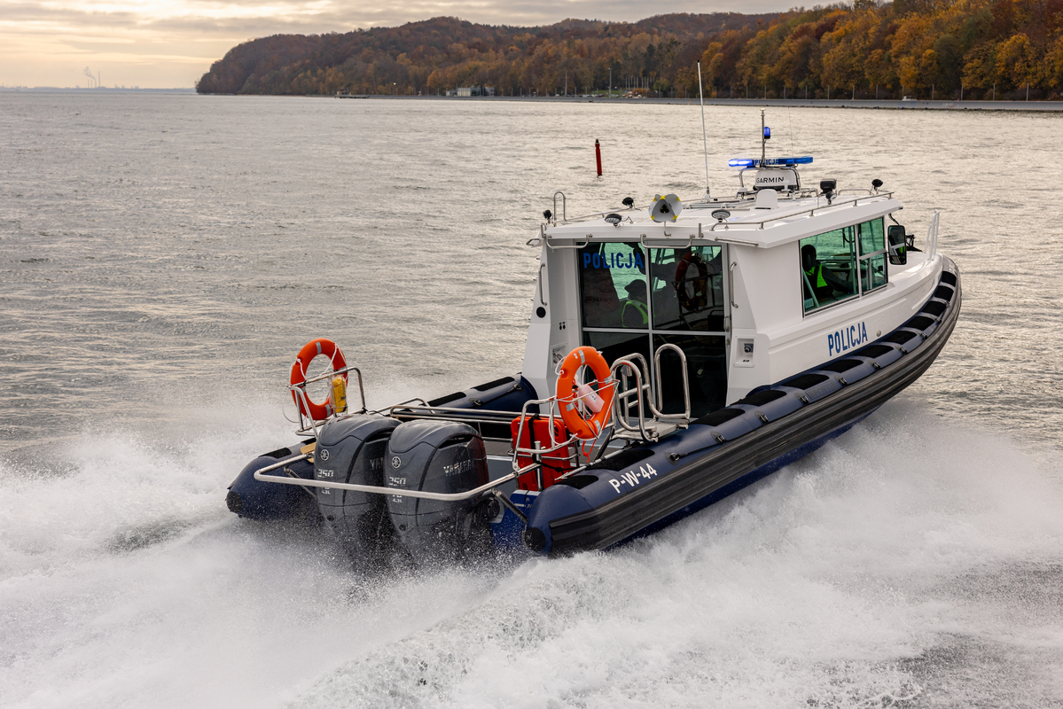- W przypadku zakupu łodzi kat. R-1 - w dniu 24 listopada 2025 r. dostarczono i odebrano 1 sztukę fabrycznie nowej (rok produkcji 2025) łodzi typu RIB kategorii R-1 SPORTIS model S-10500/K z 2 (dwoma) silnikami zaburtowymi czterosuwowymi marki YAMAHA o mocy każdy 350 KM. Łódź została przekazana do KWP Szczecin.